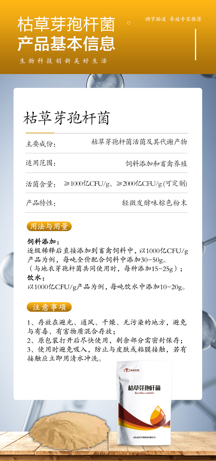 【主要成分】:枯草芽孢桿菌、載體保護(hù)劑。